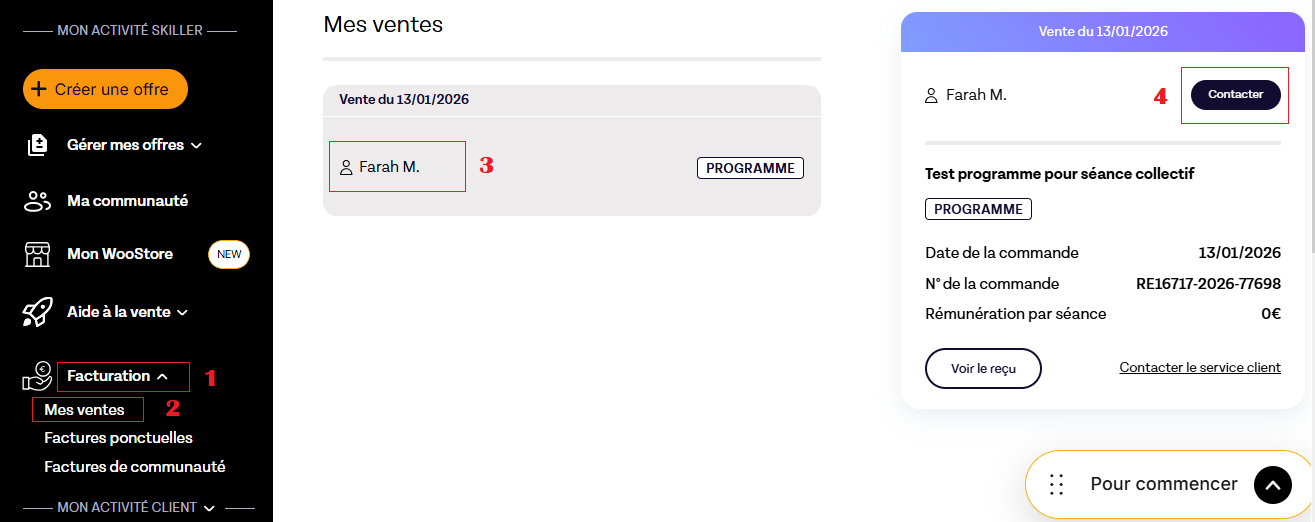 - Cliquez sur Contacter en haut à droite pour ouvrir la messagerie.