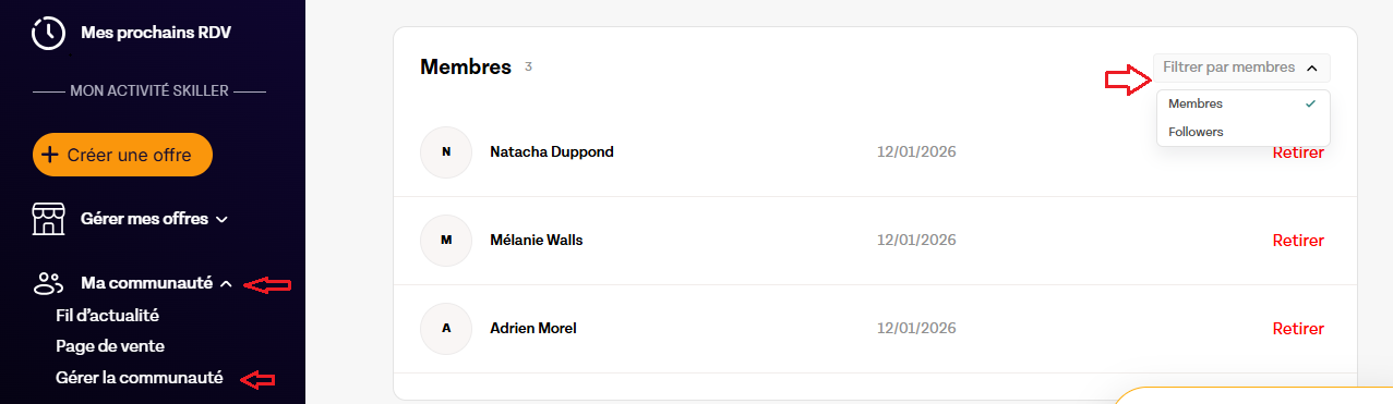 Pour consulter la liste des abonnés et membres de votre communauté :